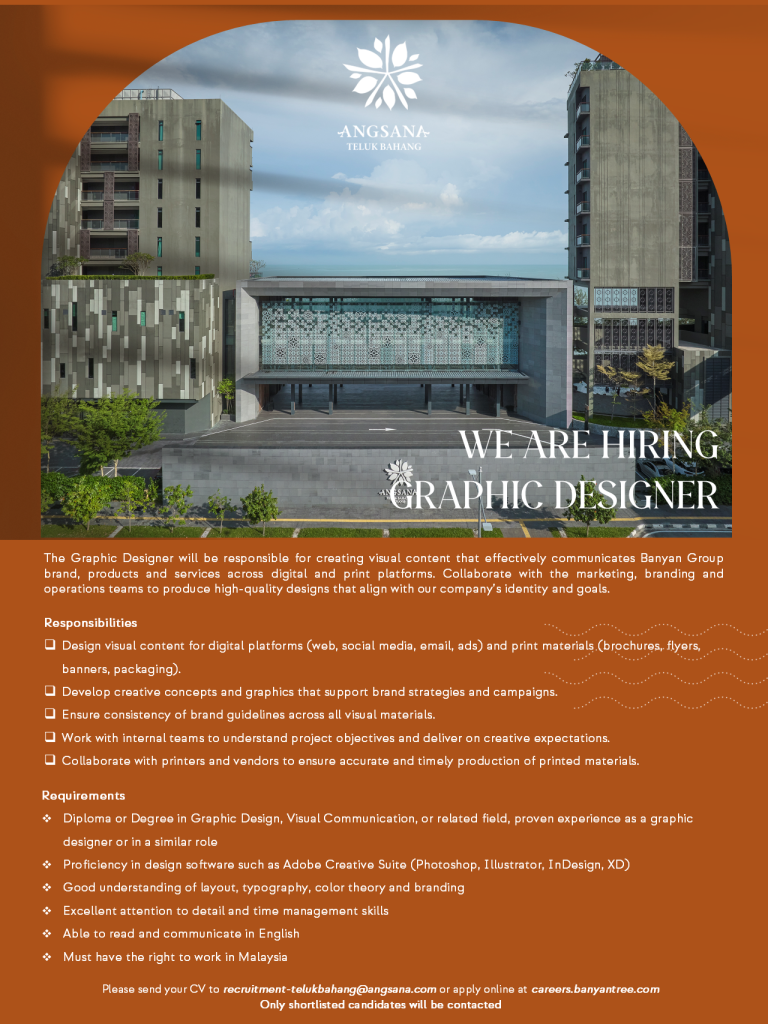 The Graphic Designer will be responsible for creating visual content that effectively communicates Banyan Group brand, products and services across digital and print platforms. Collaborate with the marketing, branding and operations teams to produce high-quality designs that align with our company’s identity and goals.